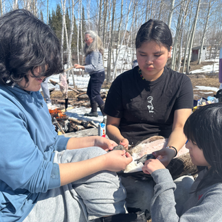Wednesday continued with more drumming in the morning, led by Orville. In the afternoon, students had the hands-on opportunity to learn how to build a goose blind—an important skill in traditional goose hunting and a meaningful connection to seasonal land-based learning.